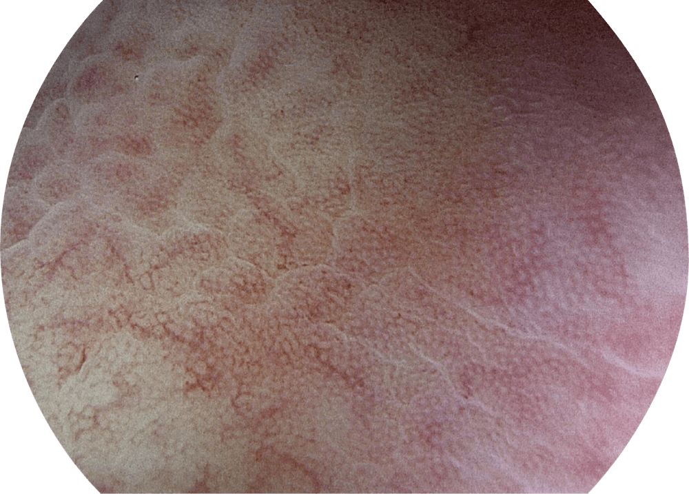 强调浅层黏膜结构的同时,保证照明亮度和提升浅层微血管与中层血管颜色对比度,病变边界更清晰。